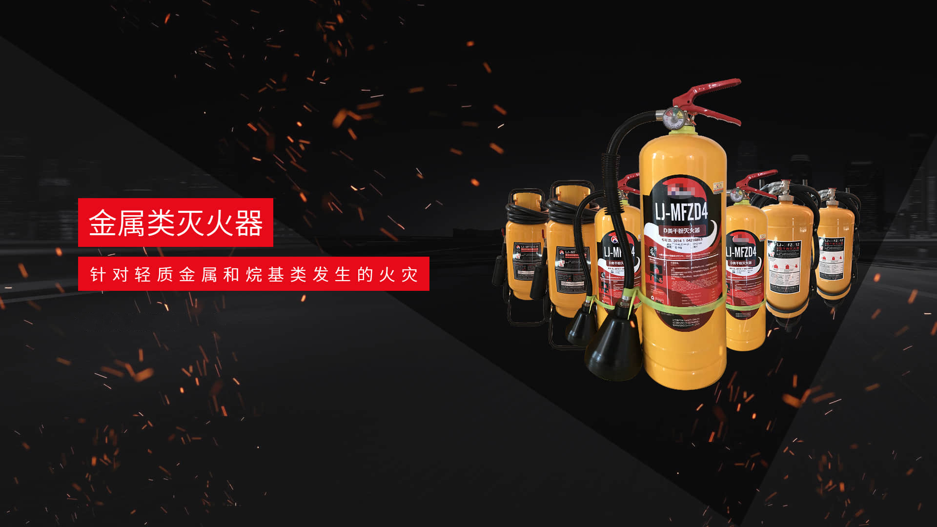 生产各种规格的ABC干粉灭火剂、ABC超细干粉灭火剂、BC干粉灭火剂、抗溶性灭火剂、D类灭火剂、D类灭火器、车载灭火器。